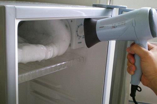 Thay vì chờ đợi, bạn có thể dùng máy sấy để làm đá tan nhanh hơn và thực hiện việc vệ sinh ngay lập tức. Cách này giúp bạn rút ngắn thời gian song cũng không gây hại cho tủ lạnh.