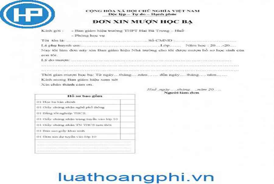Mẫu đơn xin mượn học bạ